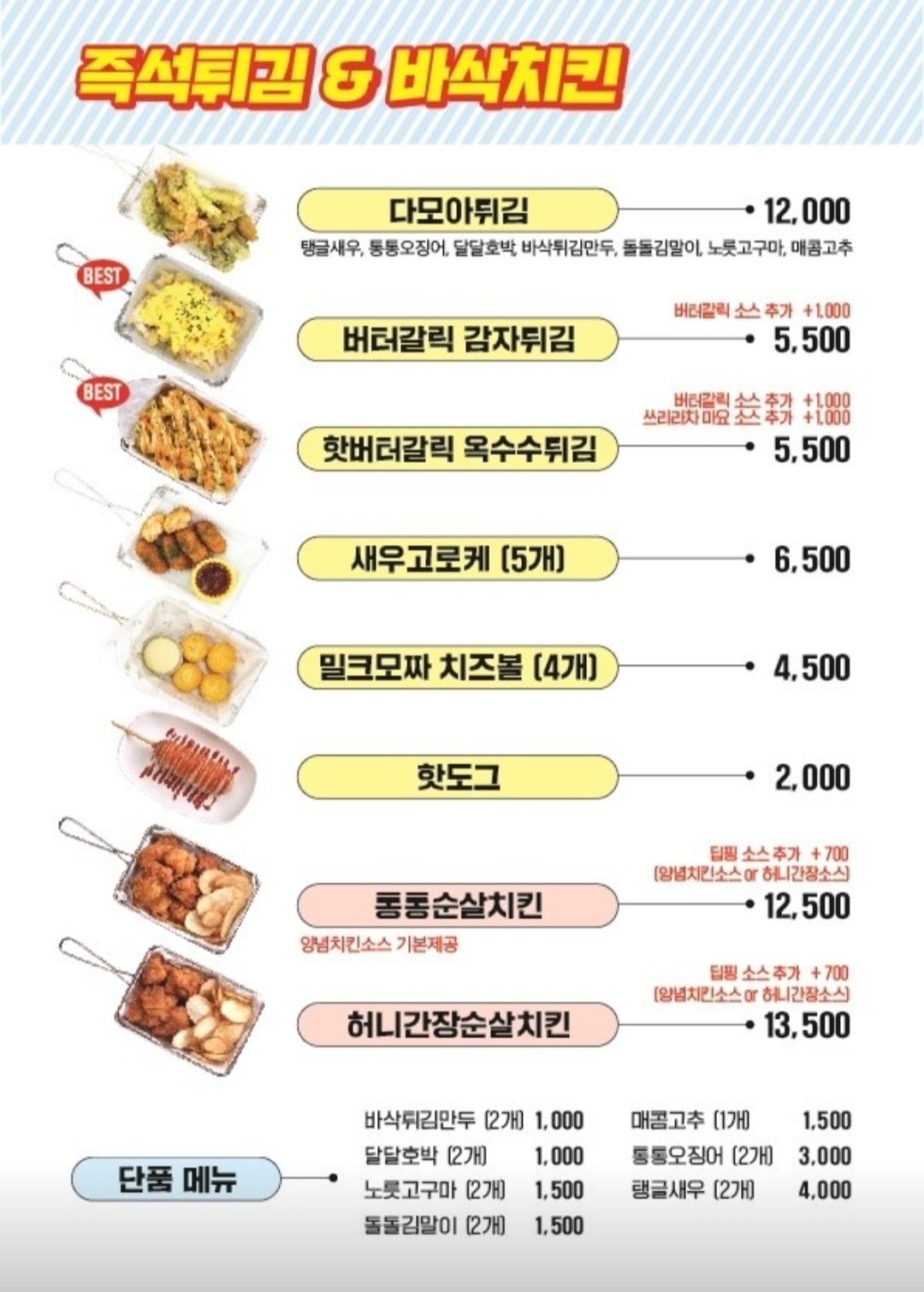 바삭한 튀김과 고소하고 달달한 버터갈릭 소스가 매운걸 중화 시켜 주고 떡볶이랑도 잘어울려요.