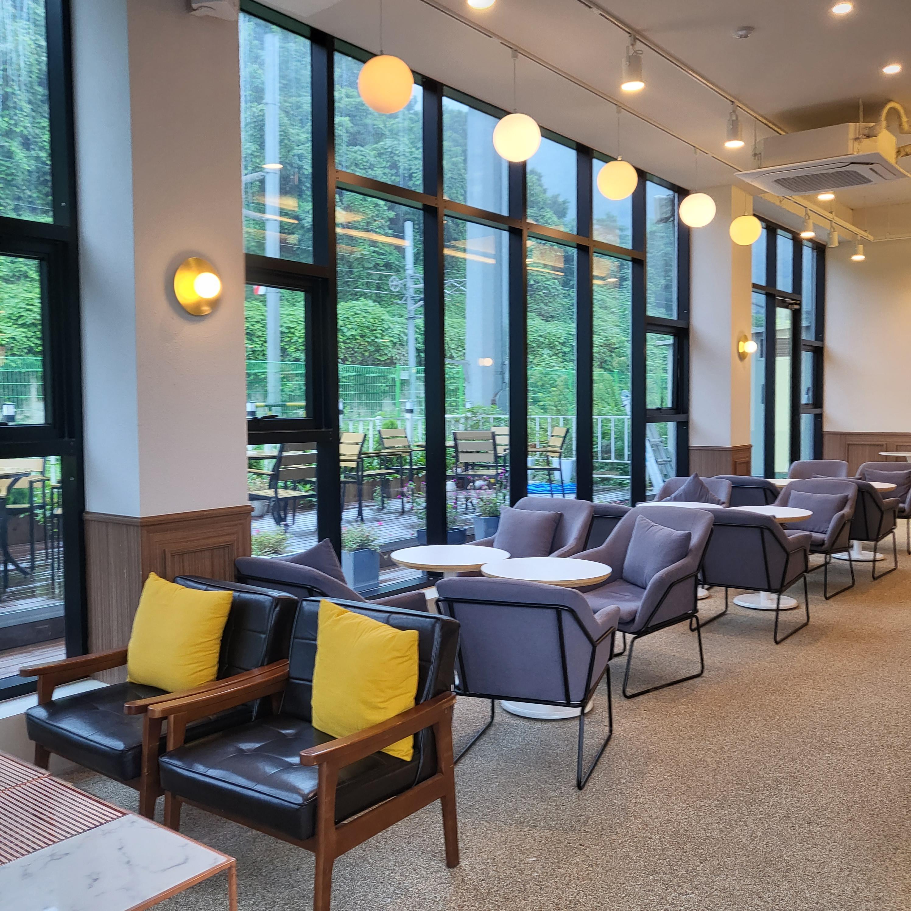 다양한 테이블과 공간이 많아서 둘이서 데이트하기도 좋고 가족이나 단체로 오기에도 자리 걱정 없을 카페예요.